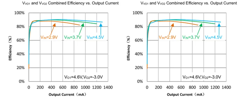 ELVSS负压输出为实现重载时极低纹波,采用双电感工作架构。若对重载纹波无特殊要求也可采用单电感工作。
